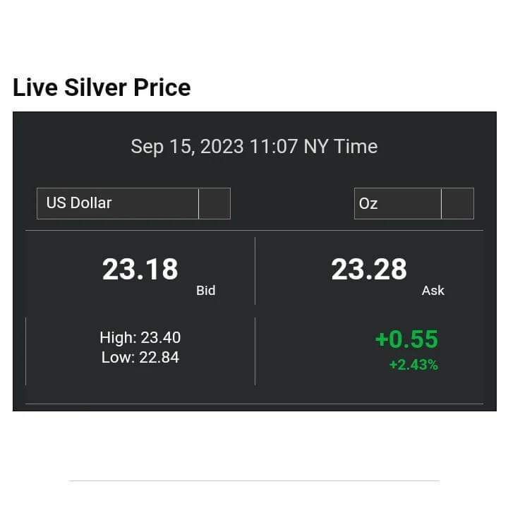 US dollar currency index backs off 105.40 down 0.17%. Pent-up rebound for precious metals causes gold and silver market to move higher. Market indices are mostly in the red with the NASDAQ – 1.3%. Oil inflation shock is still a concern as the price of crude prices to $91, currently at 90.66 per barrel. Silver the most volatile of the precious metals bounces 2.65% back into the low 23s. Volatility index rises above 13, as Traders become less complacent going into the weekend. S&P 500 down 1% at the time I’m writing this, and Russell 2000 and the Dow Jones down half a percentage point. Bitcoin remains over $26,000 at 26,289, coming up in massive Bounce from 25,000 support. 2 year treasury yield back above 5% and holding.